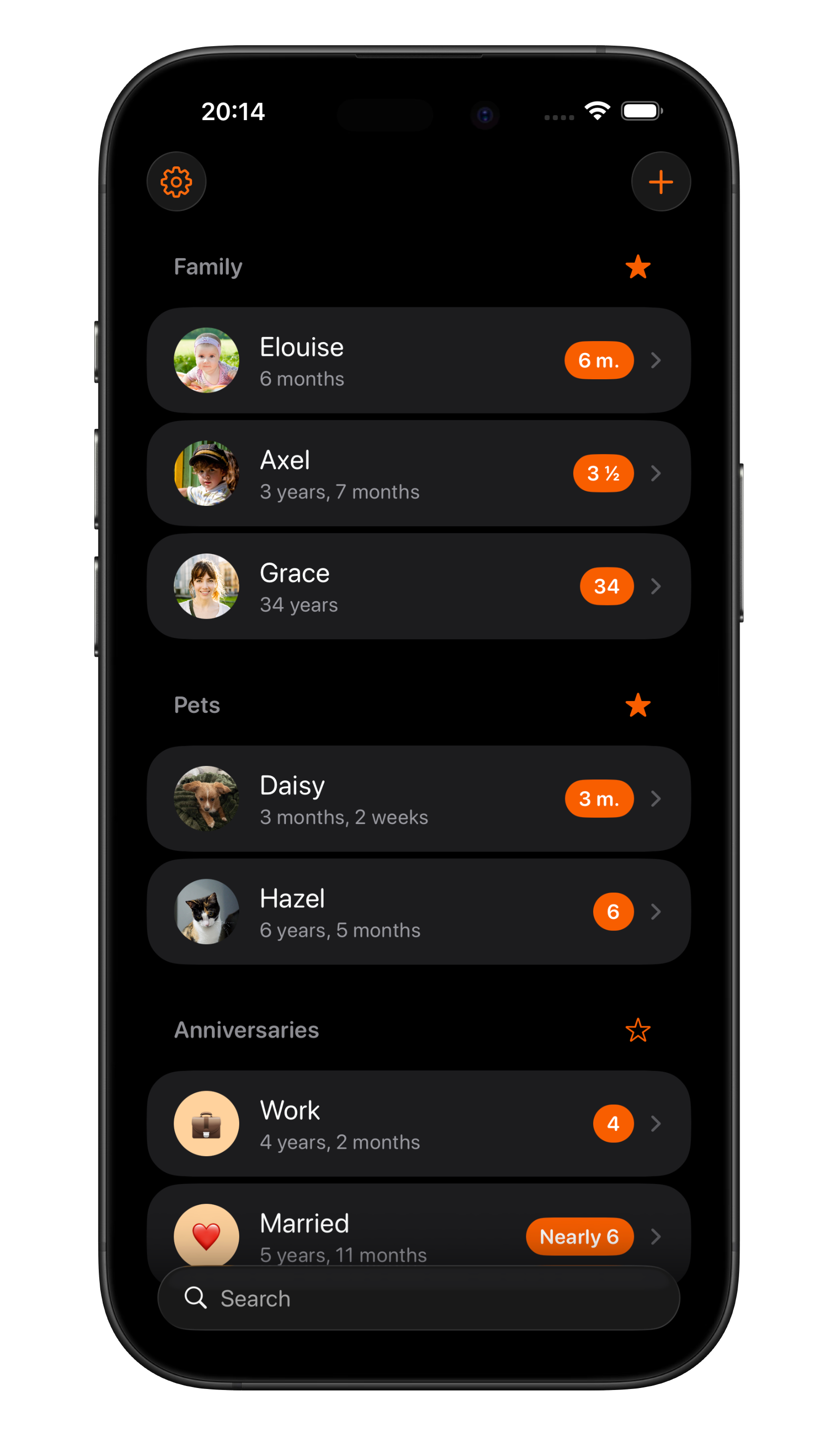 Never do age maths in your head again. Gammel tracks your kids, pets, and anniversaries down to the day, across all your Apple devices.